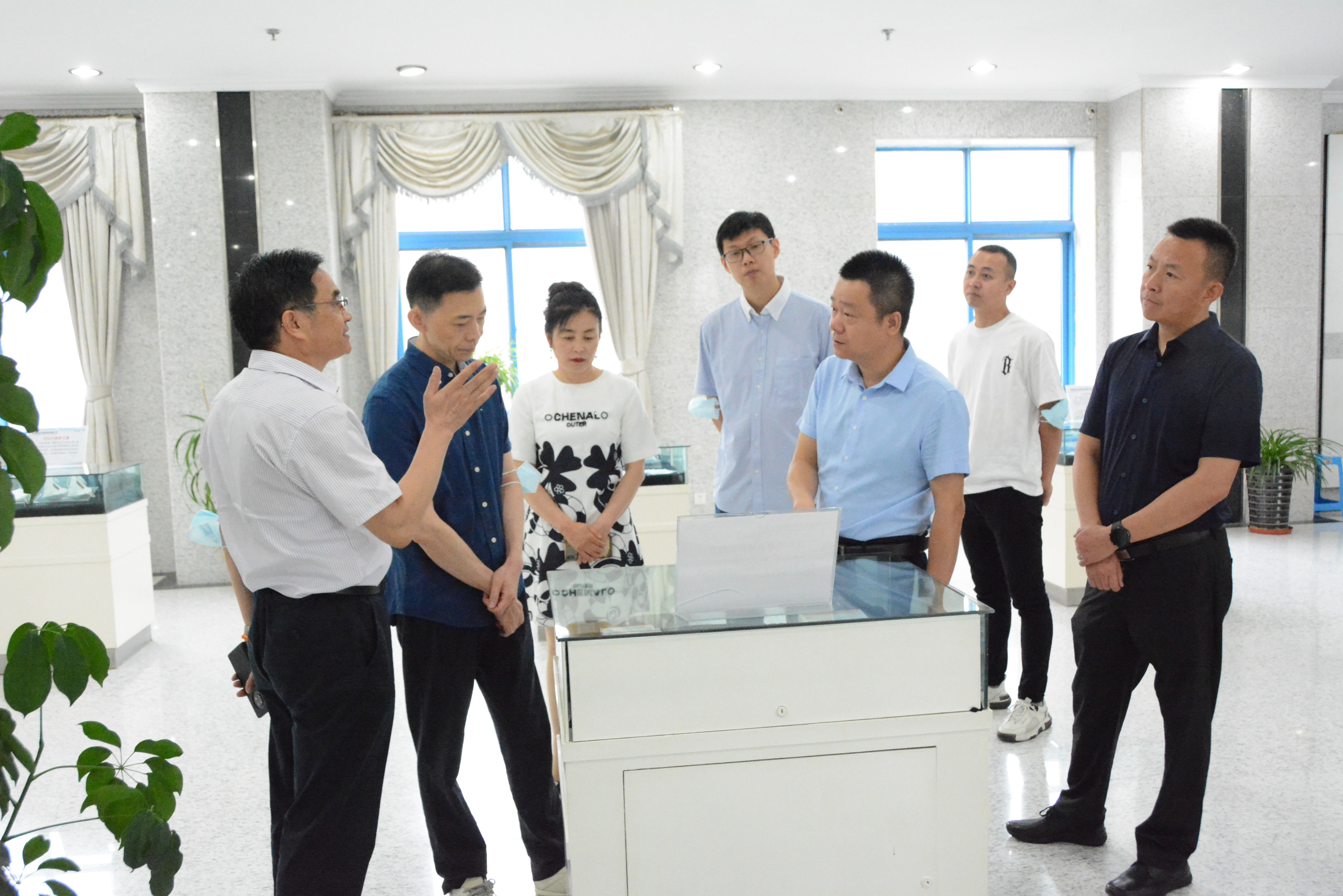 总经理张文滨代表公司对甘肃信谊天森药业有限公司一行领导的到来热情接待,他表示希望通过搭建交流平台与对方相互学习,寻求潜在合作商机。双方领导在公司产品展厅边参观、边就各自发展现状、公司规划、市场销售等感兴趣的话题进行了充分交流。